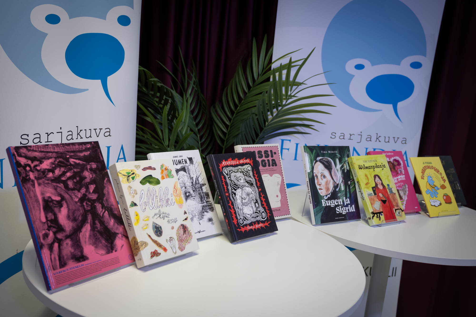 Kuvia Sarjakuva-Finlandian voittan julkistamistilaisuudesta. Kuvaaja Kyuu Eturautti / Conikuvat.fi. Julkaisuehto CC BY 4.0.