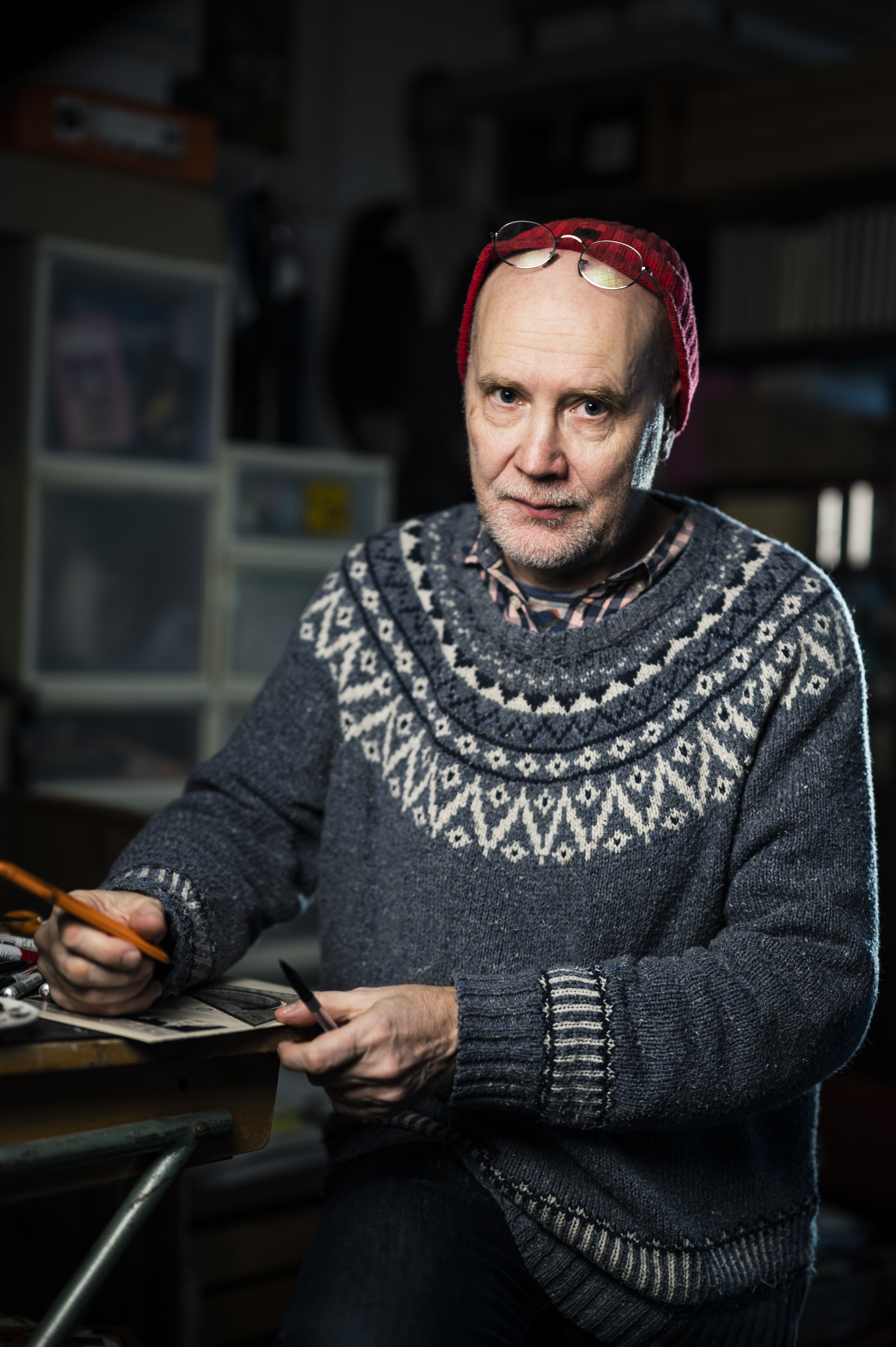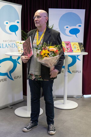 Kuvia Sarjakuva-Finlandian voittajasta Matti Hagelbergistä (kuvaaja: Veikko Somerpuro).