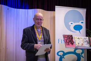 Kuvia Sarjakuva-Finlandian voittan julkistamistilaisuudesta. Kuvaaja Kyuu Eturautti / Conikuvat.fi. Julkaisuehto CC BY 4.0.